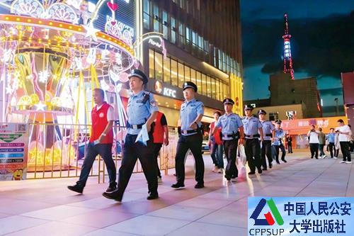 朔州市公安局朔城分局北旺庄派出所民警与网格员在辖区人流密集商圈巡逻