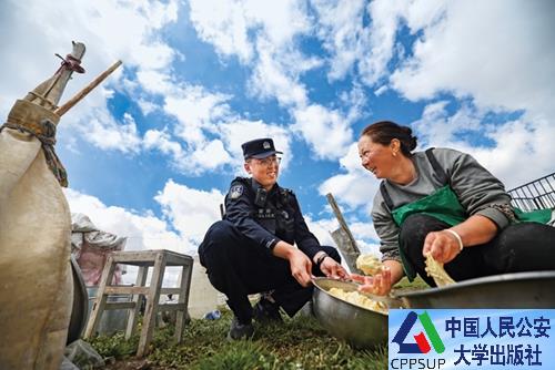 民警帮助牧民手工制作酥油