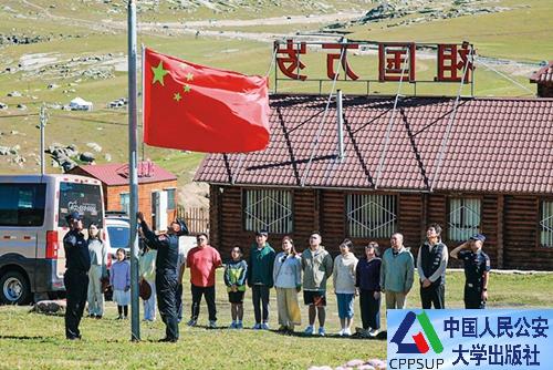 民警同游客一起升国旗
