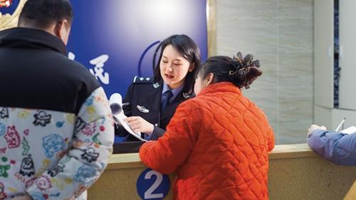 民警向群众解释业务办理流程