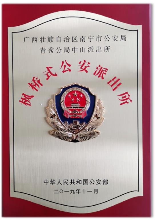 据统计,中山派出所辖区违法犯罪警情连续四年下降,42%的小区和单位连续四年保持零发案。自治区民调中心调查结果显示,近年来中山派出所的“群众安全感和满意度”连续名列南宁市前茅。